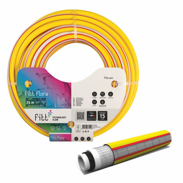 TUBO IRRIGAZIONE FITT FLORATubo da innaffio gialloTubo a 5 strati realizzato con materie prime di alta qualit e dotato di elevata flessibilit.Prodotto ideale per giardinaggio intensivoDotato di rinforzo tessile magliato in poliestere antialga ed anti raggi-UVUtilizzo da -15C a +50CPressione max di scoppio: 27 bar (1/2"")Garanzia: 15 anni"