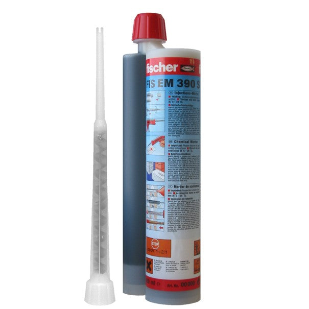 FISCHER EM 390 SIl non plus ultra del chimicoPer riprese di gettoFissaggi su fori carotati ed immersi in acquaMontaggio di elementi prefabbricatiFissaggi con requisiti di isolamento dielettricoConsolidamento solai ligneiFissaggi di linee vitaMarcatura CE che attesta l'idoneit per applicazioni su calcestruzzo fessuratoCertificato di resistenza al sisma ICC-ES ESR 1990 per barre filettate e ad aderenza migliorata per le classi di resistenza A/B secondo IBS2003Omologato da RFI per fissaggi ad alto grado di isolamento elettricoFornito con un miscelatore