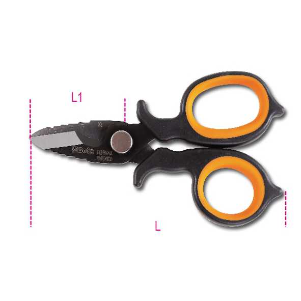 Forbici elettricisti doppio effettoForbice da elettricista con profili a fresa in acciaio inox rivestito in DLC20% di sforzo in menoProfilo e fresa per allargare fori su plastica da 13 a 25 mmRivestimento a base di carbonioLunghezza totale: 150 mm