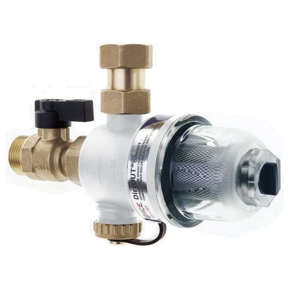 Defangatore magnetico sottocaldaia DIRTOUT COMPACTCompleto di raccordo girevole di connessione e valvola a sferaCorpo in tecnopolimeroCartuccia filtrante in acciaio inox AISI 304Tenute idrauliche in elastomeroAttacchi filettati MF UNI-EN-ISO 228Pressione max di esercizio: 3 barTemperatura max di esercizio: 0-90CMagnete al neodimio B=12000 gaussGrado di filtrazione: 800umMisura: 3/4"" M x 3/4"" FColore bianco"