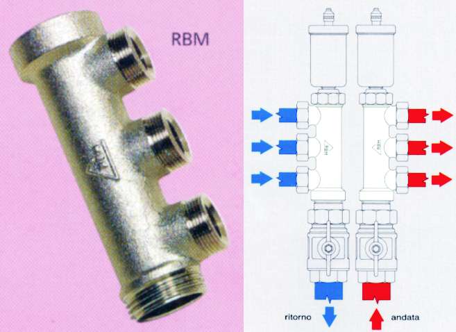 Modulo per collettore semplice componibileInterasse: 37 mmAttacchi di testa M e FAttacchi laterali RBM ""S"" indica il numero degli attacchi"