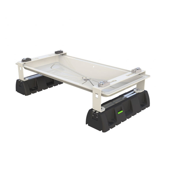 Supporto a pavimento con bacinella BLUE RIVERSupporto INFINITY con basi EXTREME 100-8Piedini in lamiera elettrozincataPiedini verniciatura in poliestere da esterno color avorio RAL 9002Bacinella BLUE RIVER realizzata in plastica ABS PMMA color avorioAttacco per tubo di scarico condensa 16Completo di kit antivibrante ""No-Shock"" 2 Hard+2 SoftPortata: 150KgCavo scaldante 3 mt"