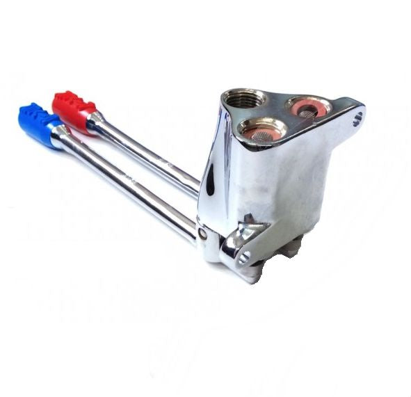 Miscelatore esterno a 2 pedali fissaggio a pareteUn pedale solo fredda ed un pedale solo caldaLa miscelazione si ottiene premendo entrambi i pedali contemporaneamente